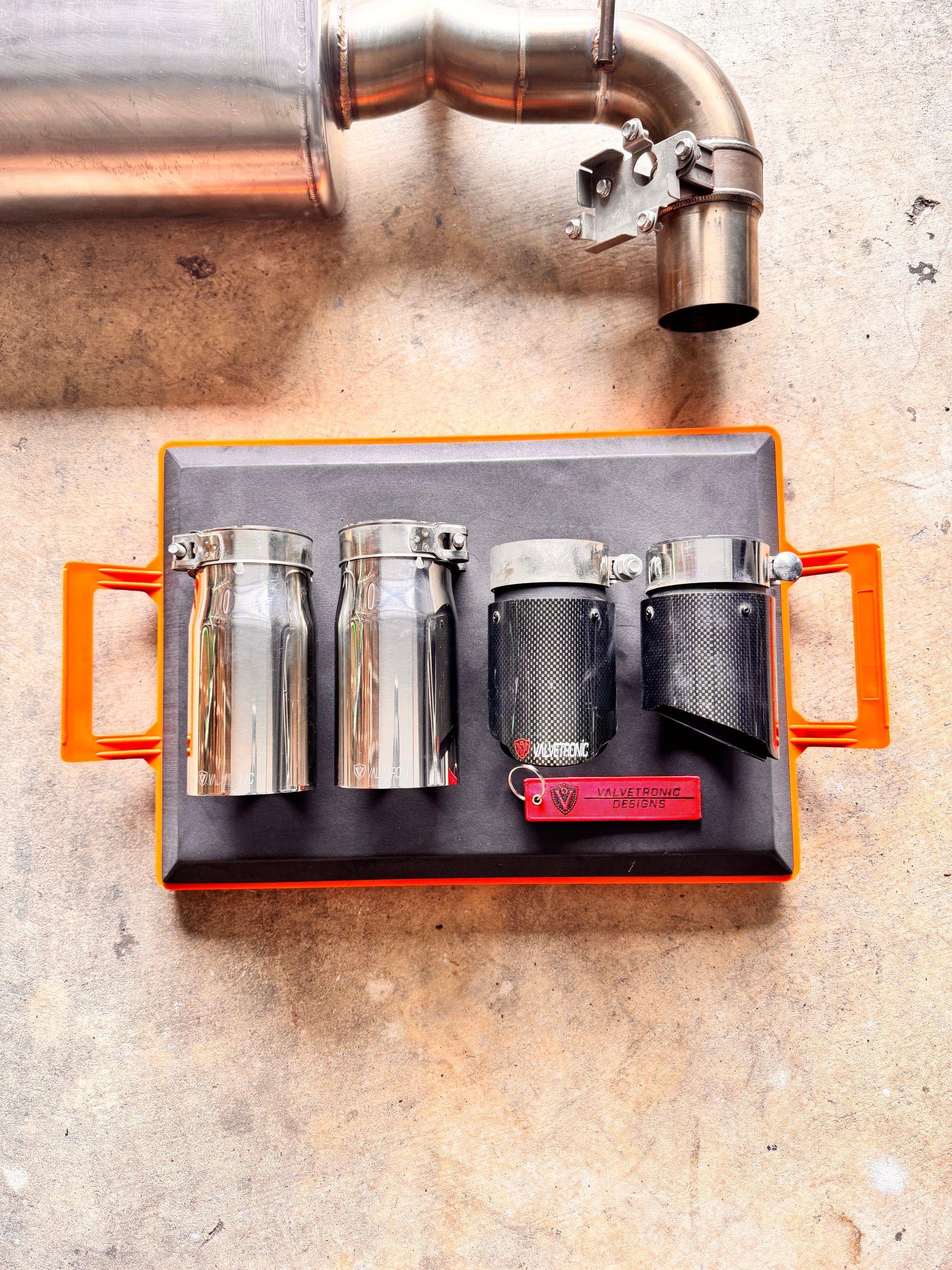 Included are two sets of interchangeable exhaust tips, allowing you to customise your rear-end look between classic chrome or aggressive 1x1 carbon fibre finishes.
